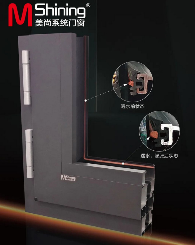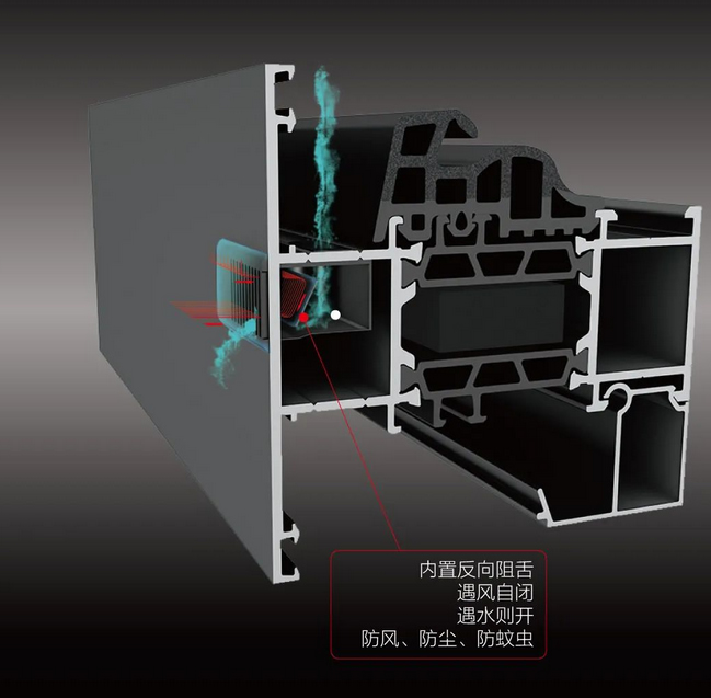 美尚门窗接纳了新一代嵌入式导流排水体系,腔体地漏完整导流。内置反向阻舌,遇风自闭遇水则开,防风、防尘、防蚊虫。